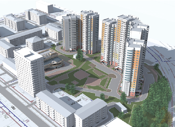 - Жилая застройка микрорайона состоит из 5-этажных жилых домов серии 1-510, 9 и 12- этажных домов серии 11-68, 16-этажного дома серии П-44. Проектом застройки предусматривается 100% поочерёдный снос всех существующих 5- этажных домов. Предусмотрена застройка микрорайона многоэтажными жилыми домами по индивидуальным проектам со встроено-пристроенными нежилыми помещениями в первых этажах и подземными гаражами-стоянками.