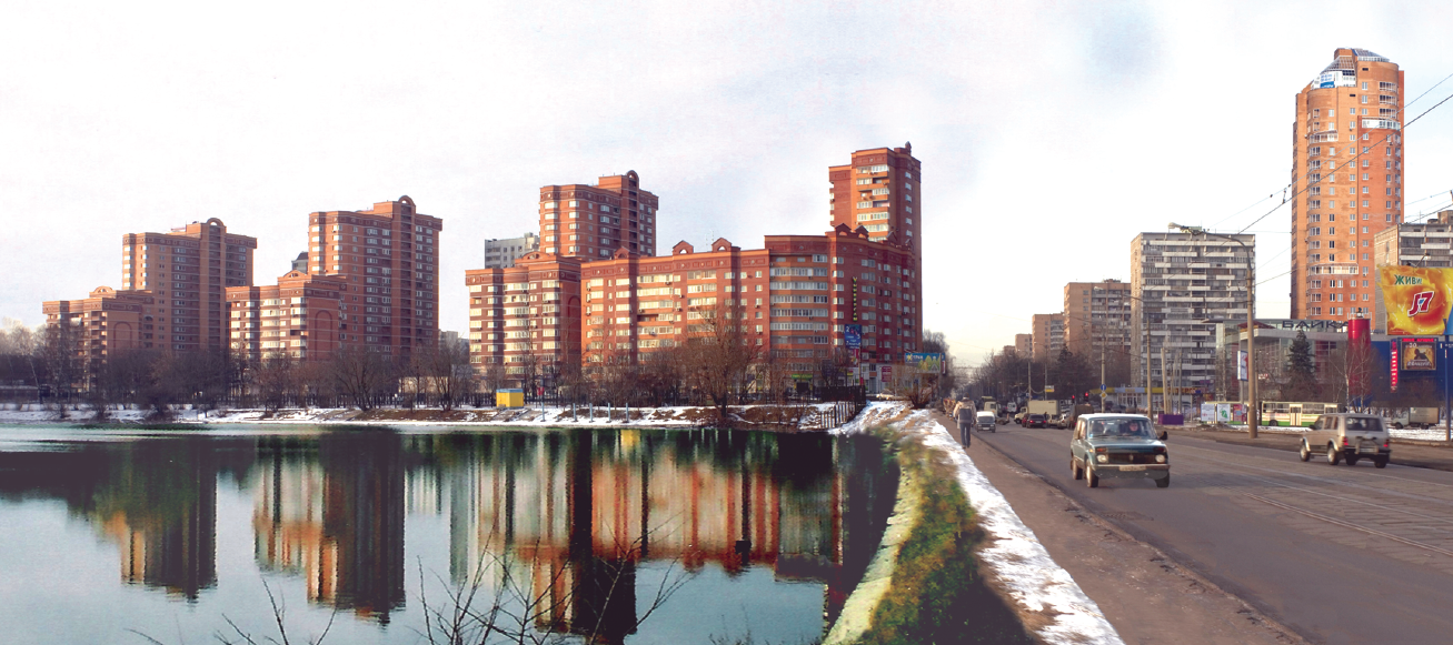ул. Гарибальди и Ленинского проспекта на месте сноса 5-этажных жилых домов. Основой композиционной структуры участка является компактно-периметральная застройка индивидуальными жилыми домами, благодаря которой улица Гарибальди приобрела активный фасад, а новые жилые дома – изолированные от улицы дворовые пространства.
