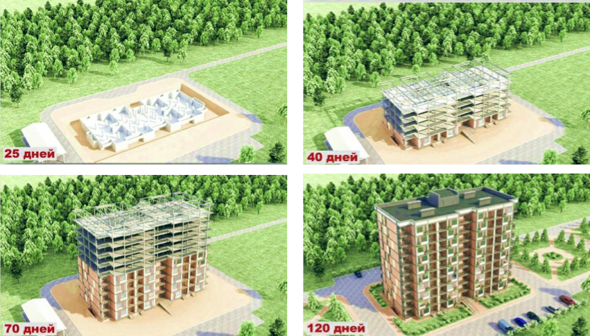 - Эффективная реализация президентской программы «Доступное и комфортное жилье – гражданам России» за счет применения уникальной технологии быстровозводимых зданий